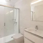 В ванной комнате также есть ванна, отдельный туалет и душ. Для удобства гостей предусмотрены фен и полотенца.